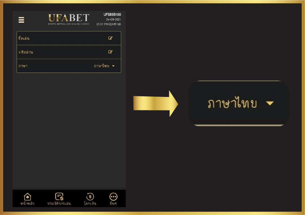 เมื่อสมาชิกล็อคอินเข้าสู่ระบบแล้ว เพื่อความสะดวกในการทำรายการต่างๆของเว็บ UFADELTA เว็บไซต์พนันออนไลน์ชั้นนำของเอเชีย และอันดับหนึ่งของไทย เรามีปุ่มเปลี่ยนภาษาไว้รองรับถึง 5 ภาษาได้แก่ ภาษาไทย ภาษาอังกฤษ ภาษาจีน ภาษาเวียดนาม และภาษาลาว ลูกค้าสามารถเปลี่ยนภาษาได้ตามต้องการในคลิกเดียว
